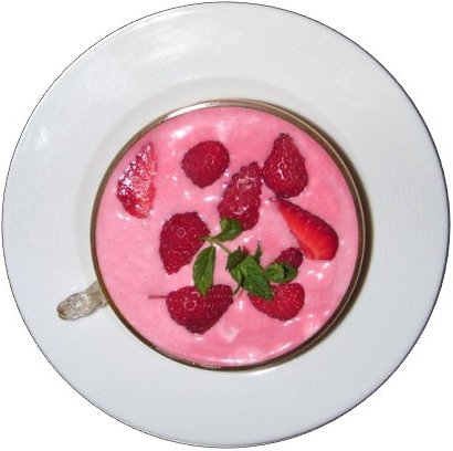 Mixer le reste avec le fromage blanc, le sucre vanillé et la moitié du sucre glace. Verser dans un cul de poule.