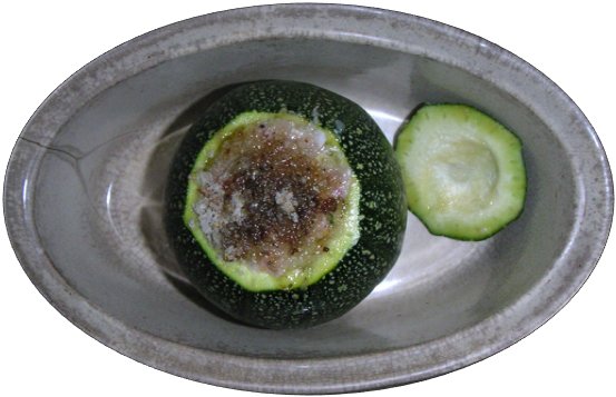 Garnir les courgettes avec cette farce. Les placer dans un plat à four, ajouter un peu de chapelure sur le dessus; arroser d'un filet d'huile d'olive.