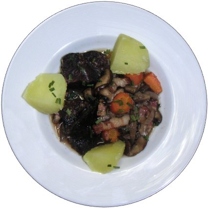 Faire mariner la viande, l'oignon, l'ail et le bouquet garni 24 heures dans le vin rouge.