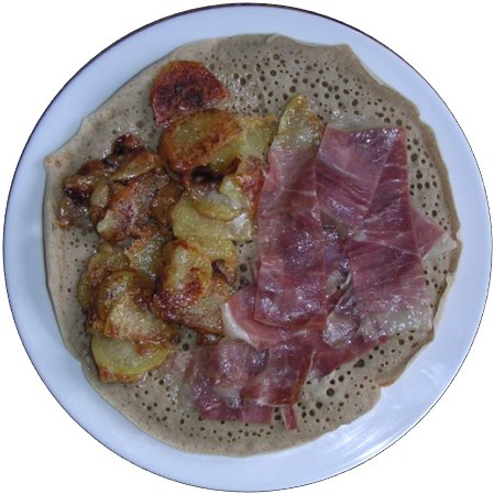 • Salés avec des pommes de terre (sautées ou vapeurs) et du jambon cru d'Auvergne, du Saint Nectaire, du bleu d'Auvergne