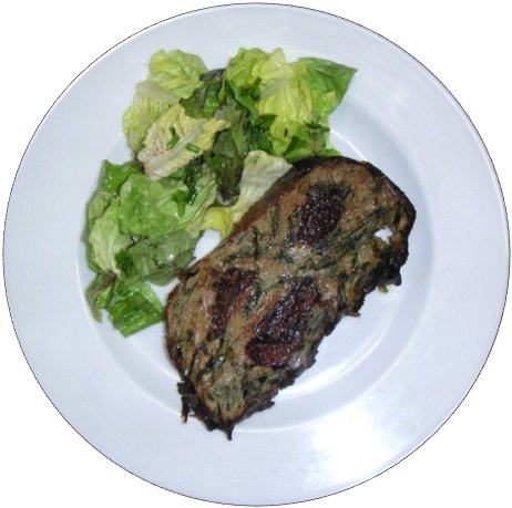 Servir chaud ou froid avec une salade verte. Pour ce qui reste, vous pouvez passer les tranches à la poêle.