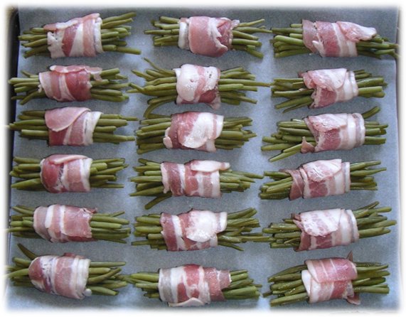 Les enrouler par 15 dans une tranche de poitrine fumée.