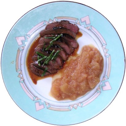 Trancher les magrets assez fins et présenter-les dans des assiettes chaudes en éventail. Napper avec la sauce au beurre et cidre.