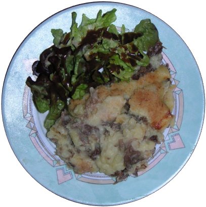 (6 personnes) 1 kg 500 de purée de pommes de terre maison 4 cuisses de canard confites maison 2 échalotes Chapelure Sel et poivre