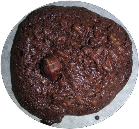 Mélanger les blancs d'œufs avec le sucre; ajouter les noisettes rapées et le cacao.