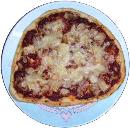 Pâte à pizza fine maison Coulis de tomates maison Jambon blanc découpé en lamelles Copeaux de comté ou parmesan