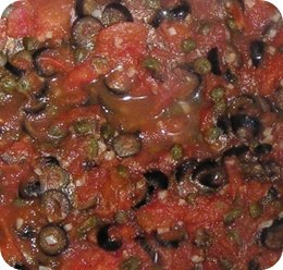 Faire chauffer un filet d'huile d'olive dans une poêle et y faire sauter l'ail, les câpres et les rondelles d'olives quelques instants.