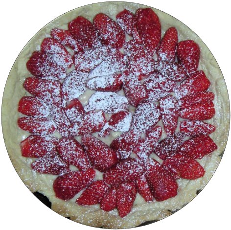 Tapisser le fond de tarte avec la crème pâtissière et disposer les fraises coupées en deux dessus.